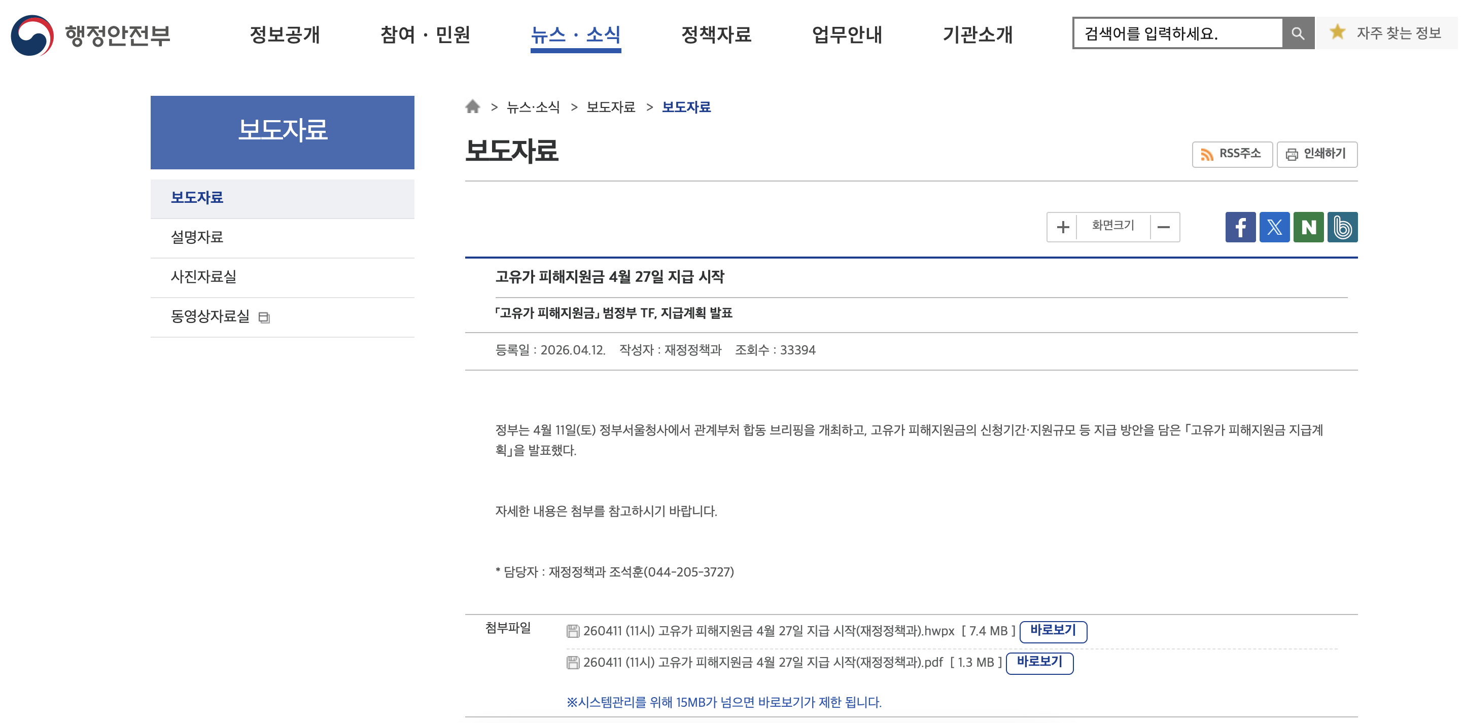 고유가 피해지원금 4월 27일 지급 시작 | 행정안전부> 뉴스·소식> 보도자료> 보도자료